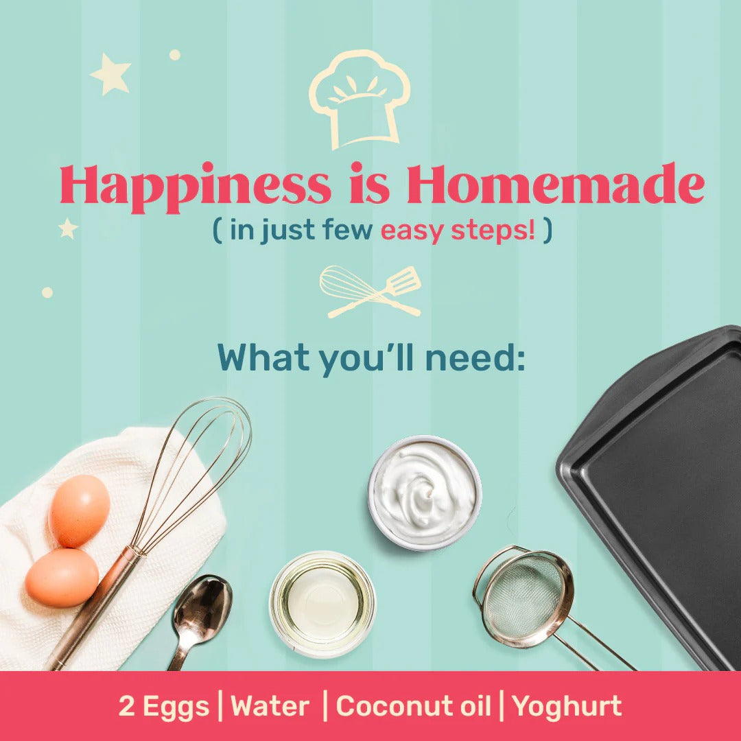 With HUFT Instant Cake Mix, your doggy can satisfy their cake craving in minutes! Made with only dog-friendly ingredients and power-packed with chicken, our cake mix makes baking a breeze. Follow the instructions below and whip up a yummy cake for your dog. Because a family that bakes together, stays together.